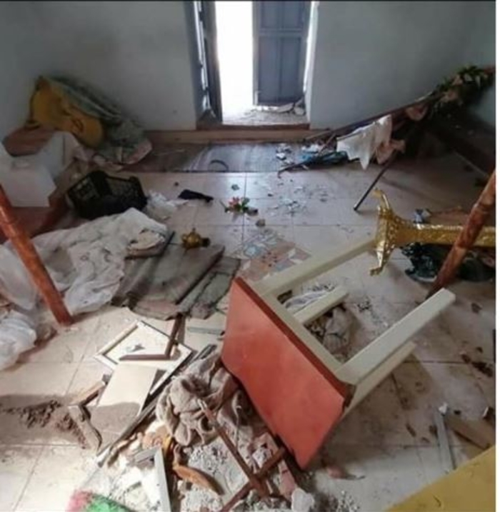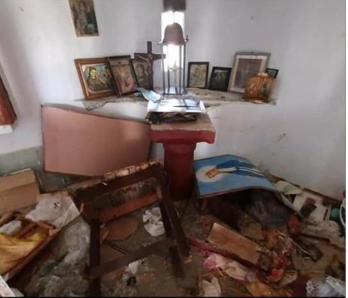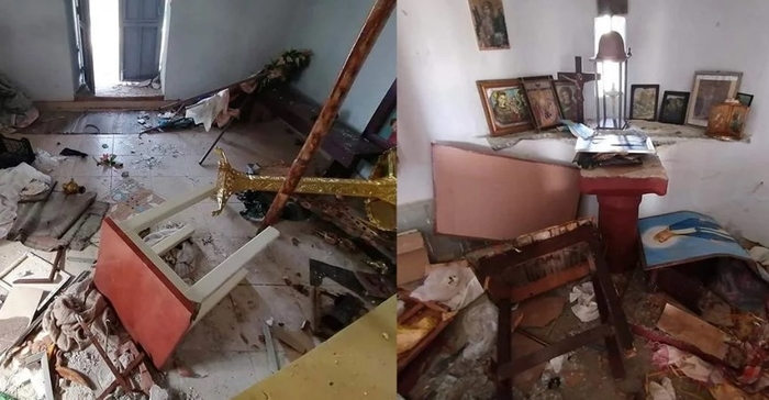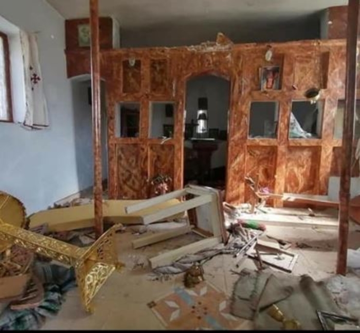 Ѕидовите се исцртани, иконите се расфрлани на сите страни и оштетени, а целиот иконостас уништен.